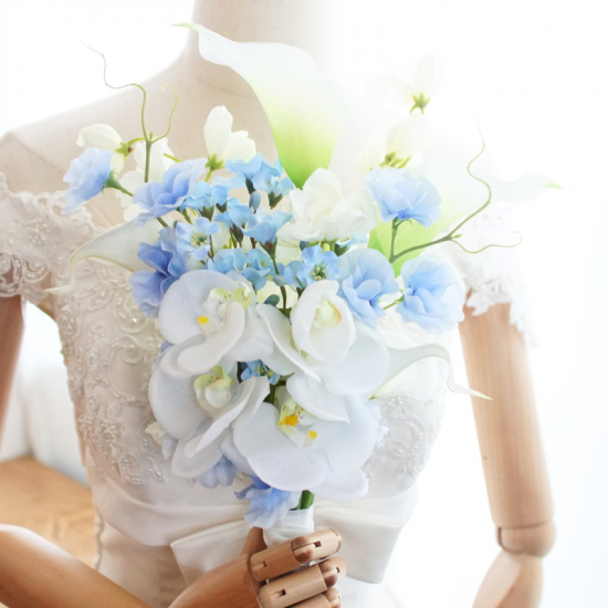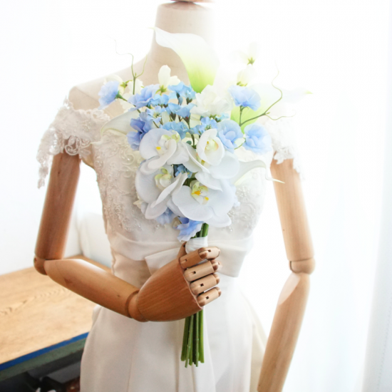 ブートニアと同様ブーケとお揃いのお花や色味でおつくりするのがとっても人気のオプションです。