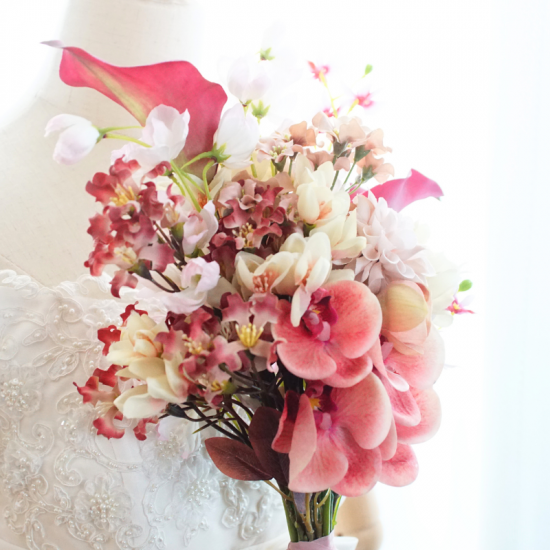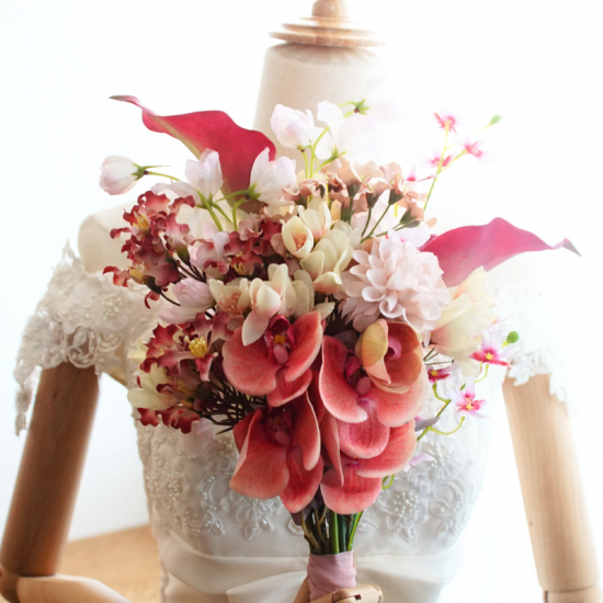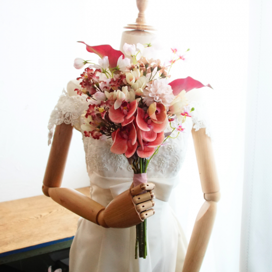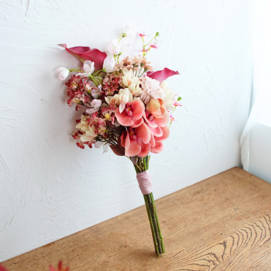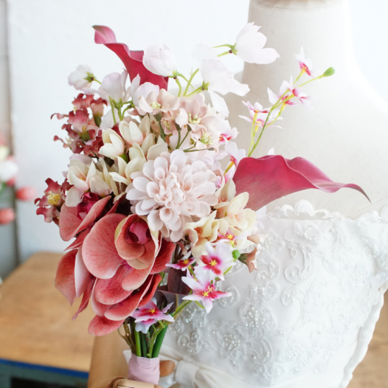 ブートニアと同様ブーケとお揃いのお花や色味でおつくりするのがとっても人気のオプションです。