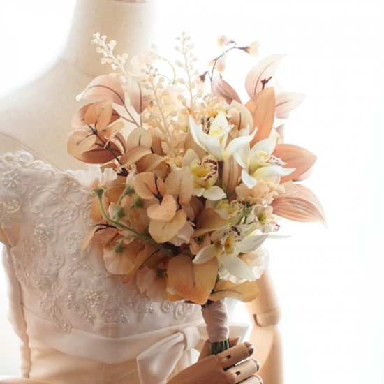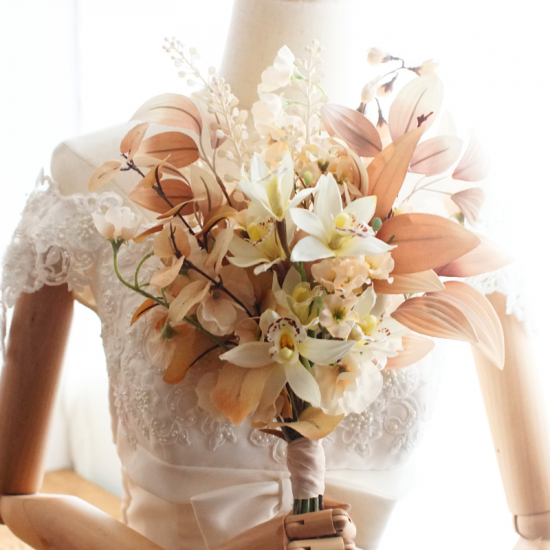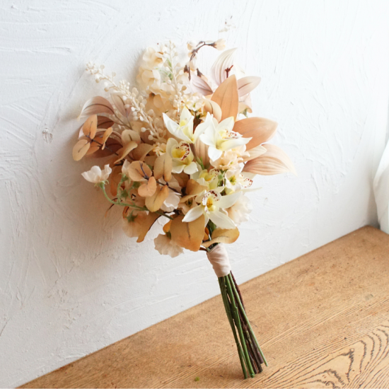 ブートニアと同様ブーケとお揃いのお花や色味でおつくりするのがとっても人気のオプションです。