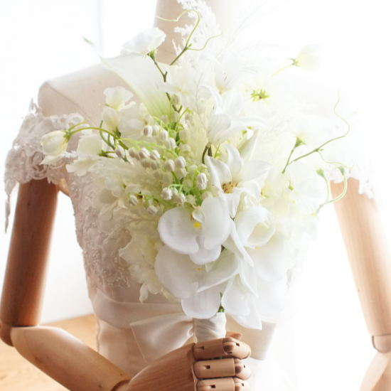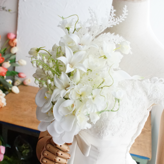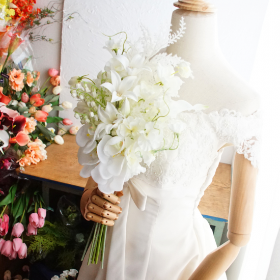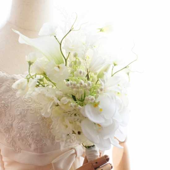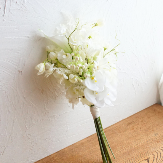 ブートニアと同様ブーケとお揃いのお花や色味でおつくりするのがとっても人気のオプションです。