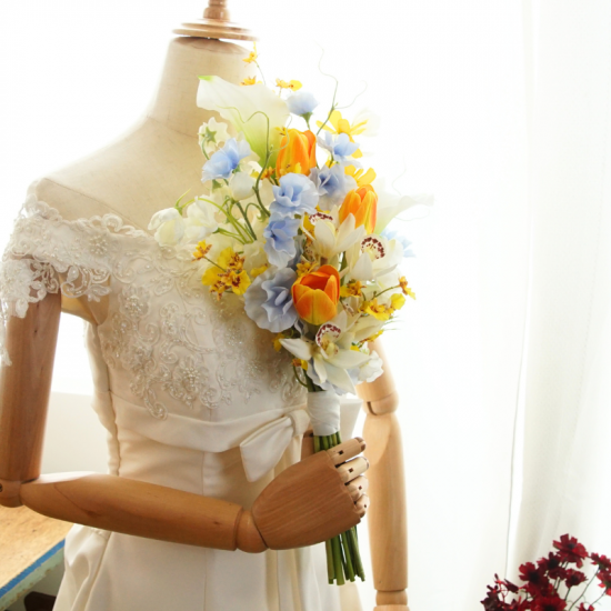 ブートニアと同様ブーケとお揃いのお花や色味でおつくりするのがとっても人気のオプションです。