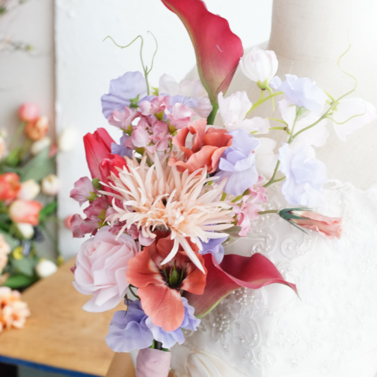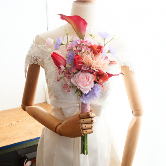 ブートニアと同様ブーケとお揃いのお花や色味でおつくりするのがとっても人気のオプションです。