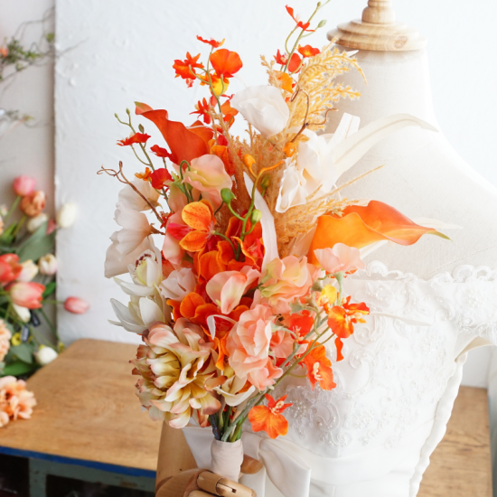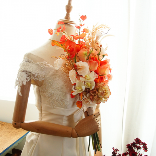 ブートニアと同様ブーケとお揃いのお花や色味でおつくりするのがとっても人気のオプションです。