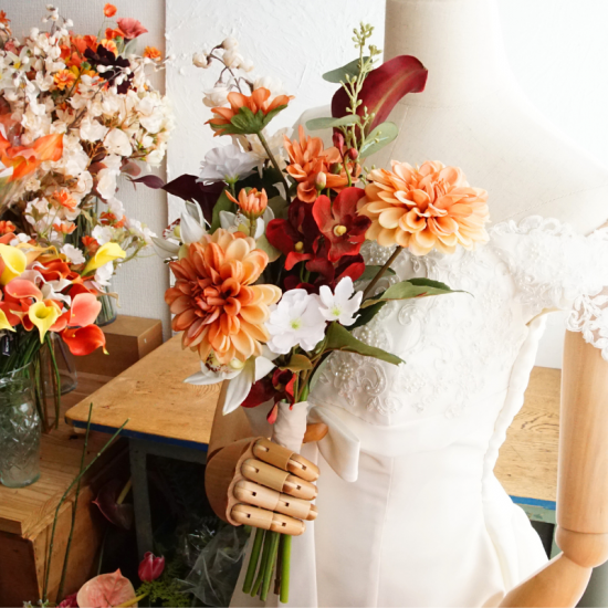 髪型やご希望のデザインをおうかがしてオーダーでおつくりしているため、ご希望や興味あるという方はブーケ購入前に↓公式LINEかインスタグラムのDMからご相談くださいませ!