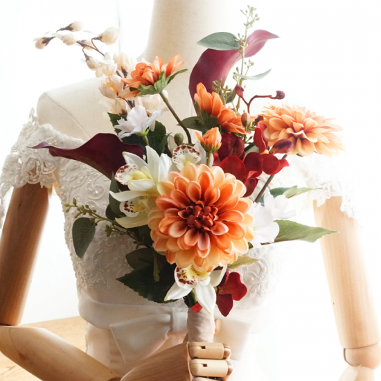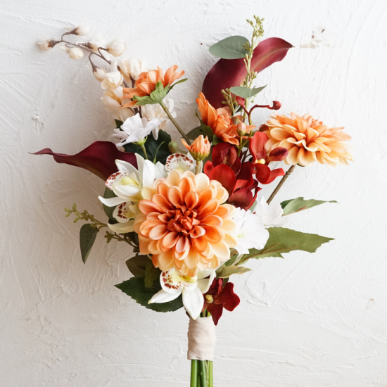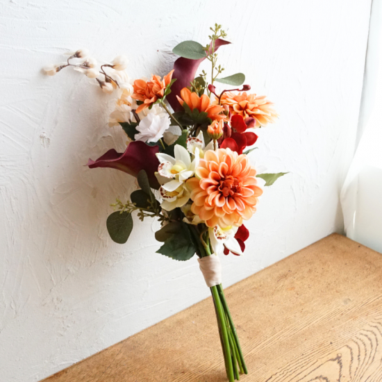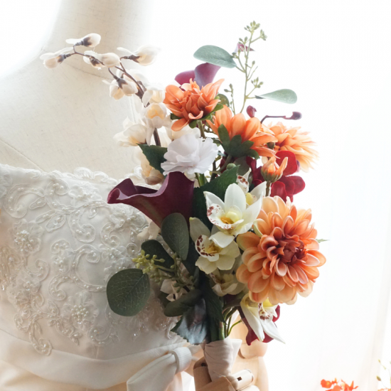 ダリア、デルフィニウム、モカラ、カラー、ユーカリ、シンビジュームなど