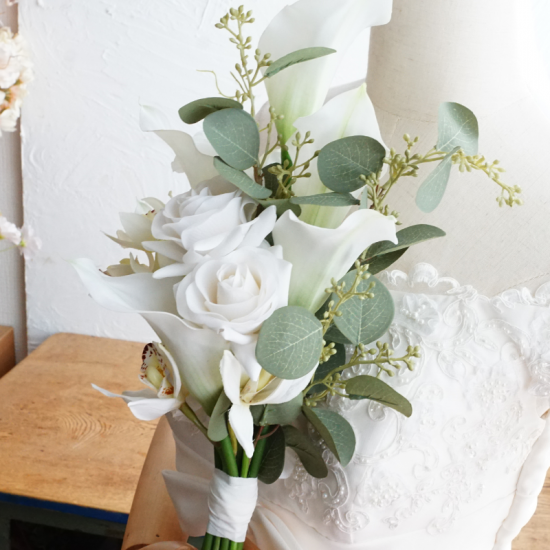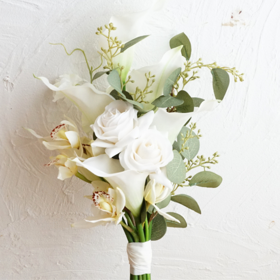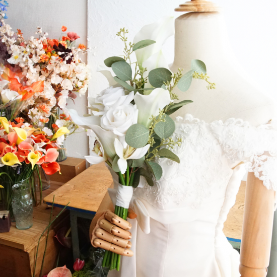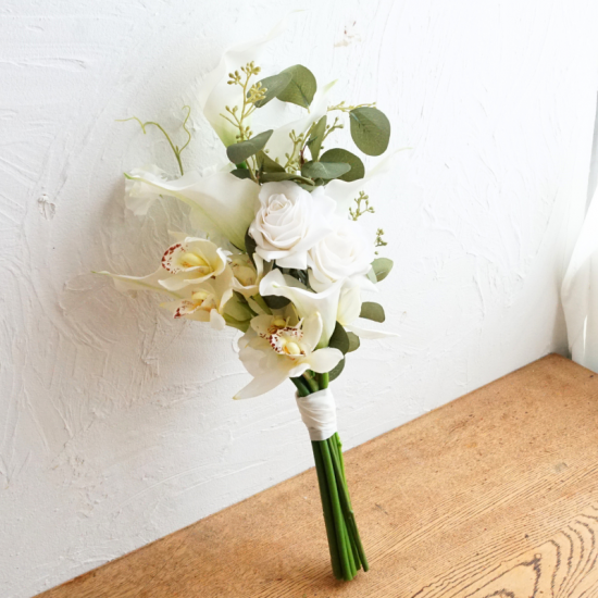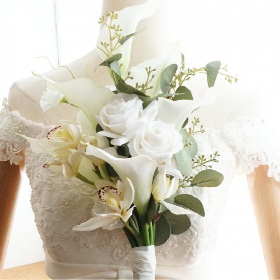 薔薇、カラー、ユーカリ、スイートピー、シンビジュームなど