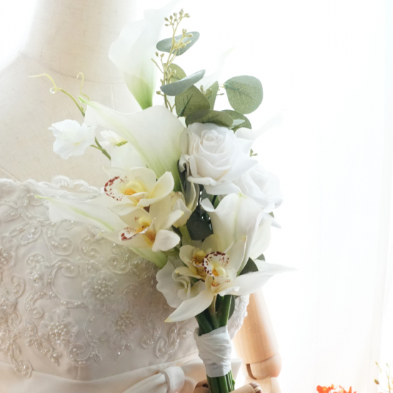 ブートニアと同様ブーケとお揃いのお花や色味でおつくりするのがとっても人気のオプションです。