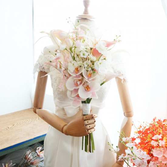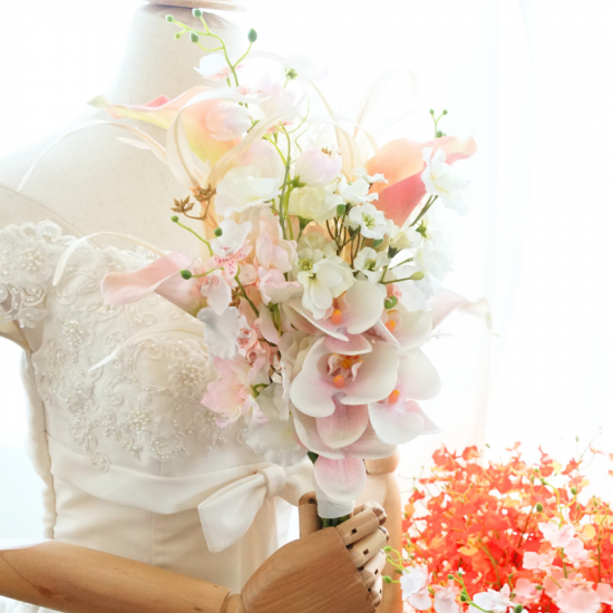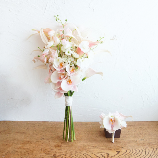 【レンタルブーケ&ブートニアセット】胡蝶蘭とパンパスグラスのブーケ