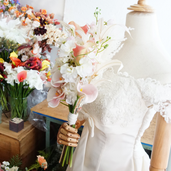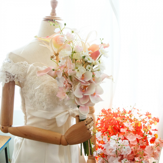 ・ブーケとブートニアをご着用いただき、挙式・前撮り・撮影などにご自由にお使いください。