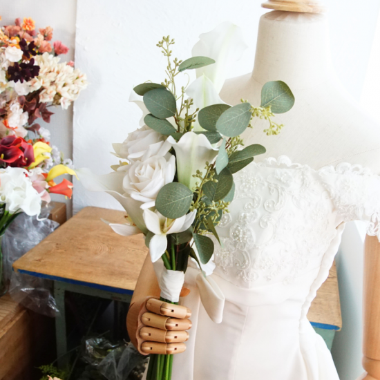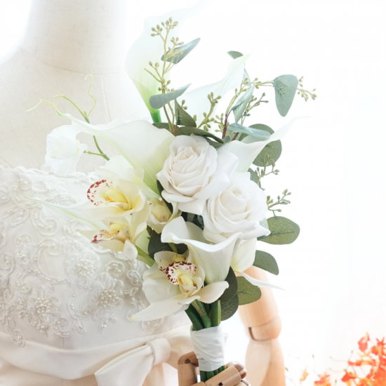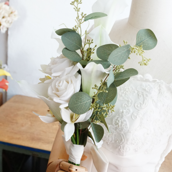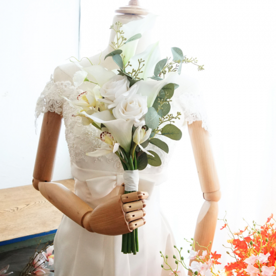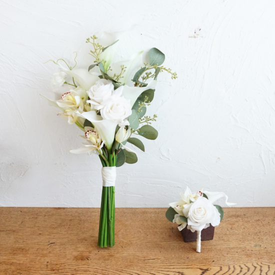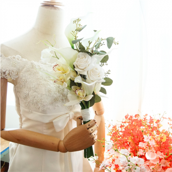 ・ブーケとブートニアをご着用いただき、挙式・前撮り・撮影などにご自由にお使いください。