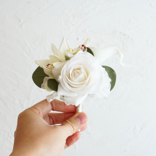 ※ブートニア着用のためのピンなどは同封されていませんので、必要な場合は別途ご用意ください