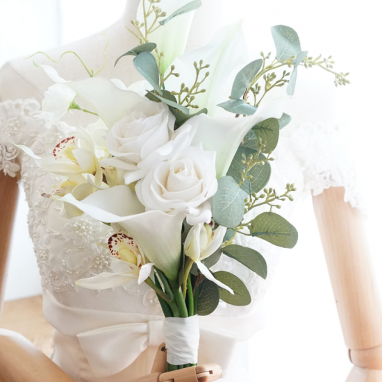 薔薇、カラー、ユーカリ、スイートピー、シンビジュームなど