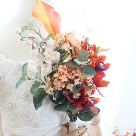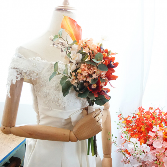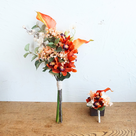 ・ブーケとブートニアをご着用いただき、挙式・前撮り・撮影などにご自由にお使いください。