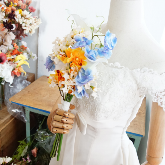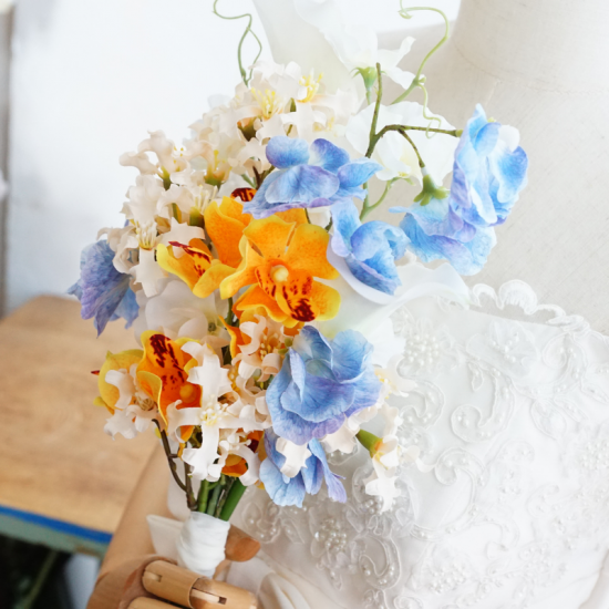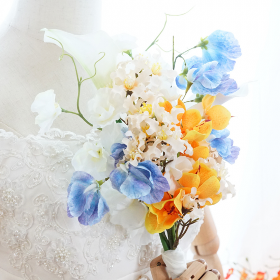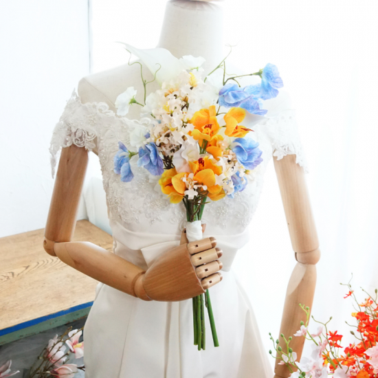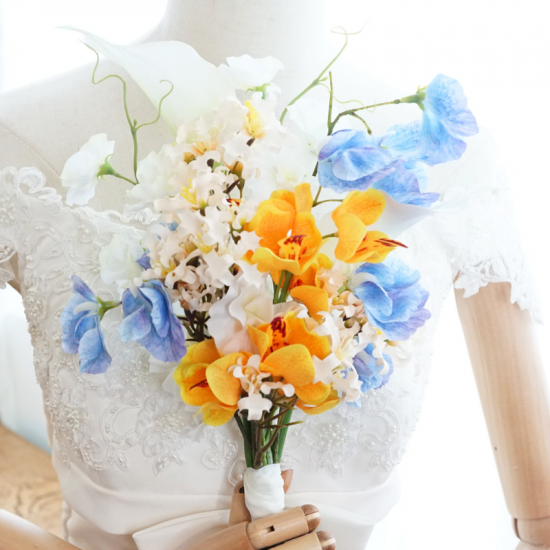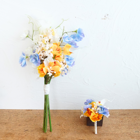 【レンタルブーケ&ブートニアセット】モカラとスイートピーのブーケ(イエロー×ブルー)