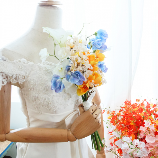 ・ブーケとブートニアをご着用いただき、挙式・前撮り・撮影などにご自由にお使いください。