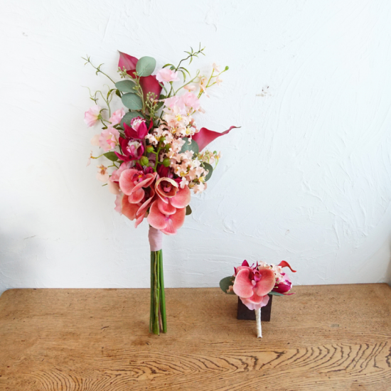 【レンタルブーケ&ブートニアセット】胡蝶蘭とユーカリのブーケ