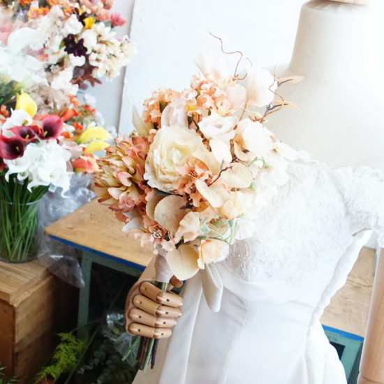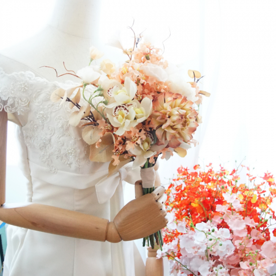 ・ブーケとブートニアをご着用いただき、挙式・前撮り・撮影などにご自由にお使いください。