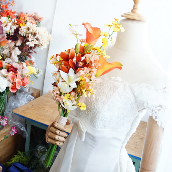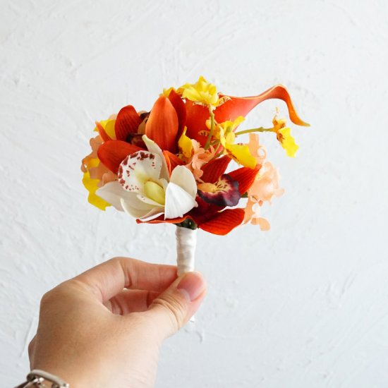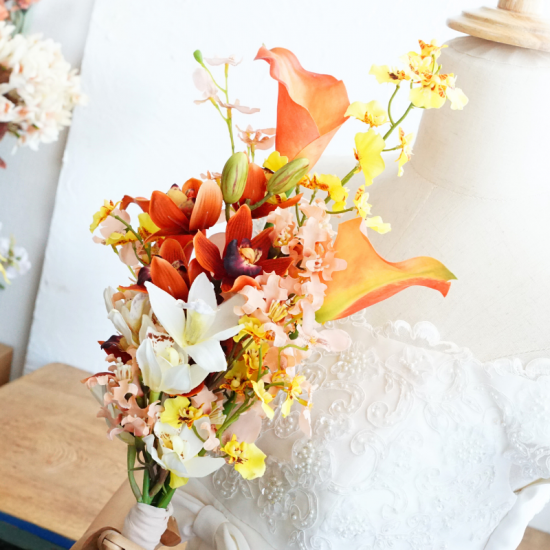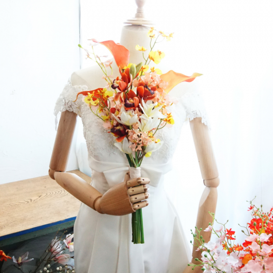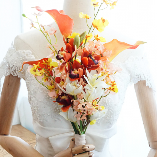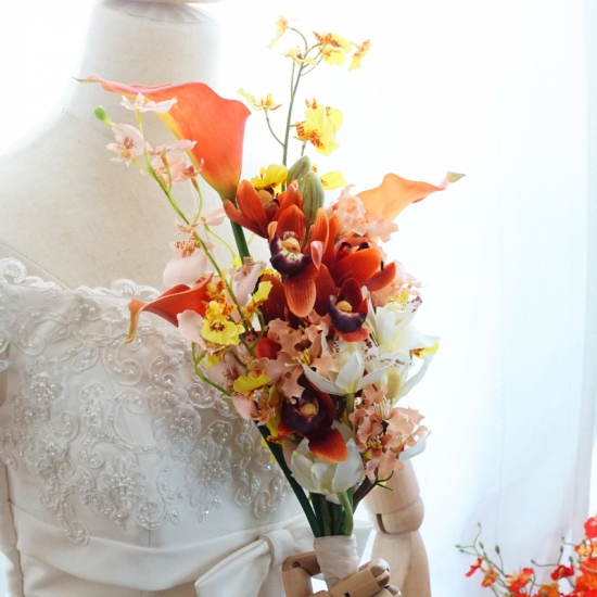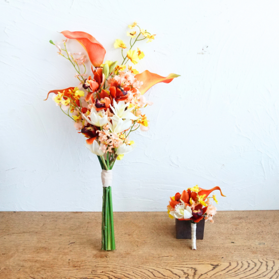 【レンタルブーケ&ブートニアセット】カラーとオンシジュームのブーケ(オレンジ×イエロー))