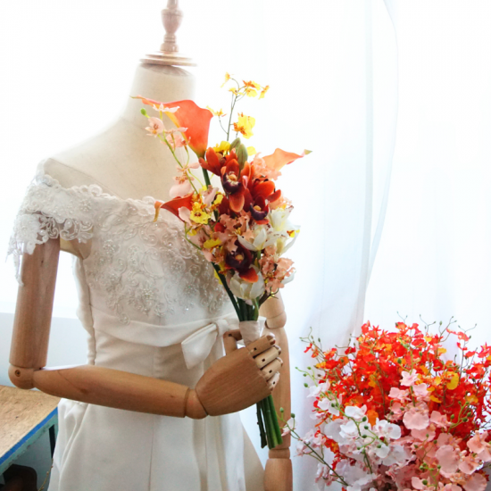 ・ブーケとブートニアをご着用いただき、挙式・前撮り・撮影などにご自由にお使いください。