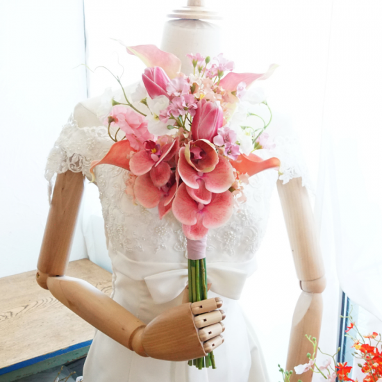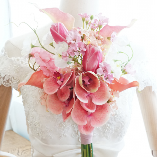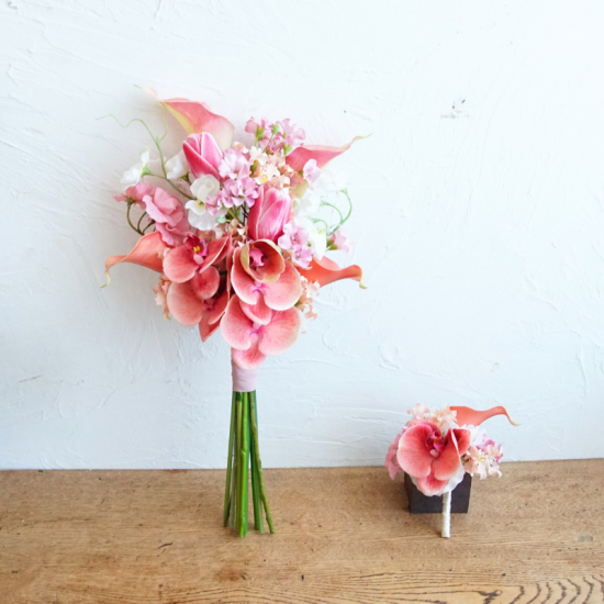 【レンタルブーケ&ブートニアセット】胡蝶蘭とチューリップのブーケ