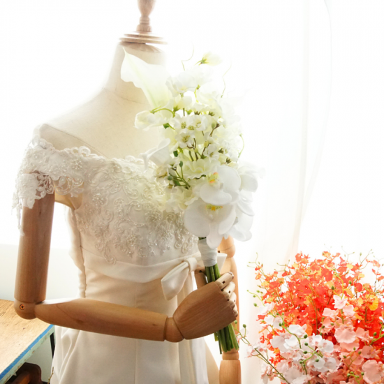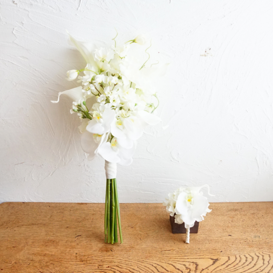 ・ブーケとブートニアをご着用いただき、挙式・前撮り・撮影などにご自由にお使いください。